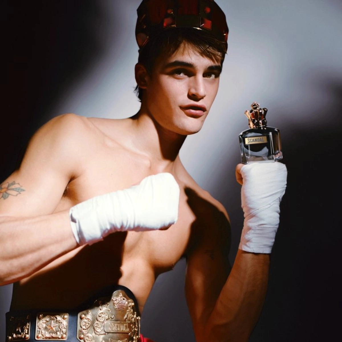 Descubra o que tem por trás do golpe certeiro, energizante e confiante do perfume Scandal Jean Paul Gaultier Eau de Toilette. Elegância forte e musculosa com luvas de boxe, o novo Jean Paul Scandal masculino faz uma chegada espetacular de sedução aos fãs.