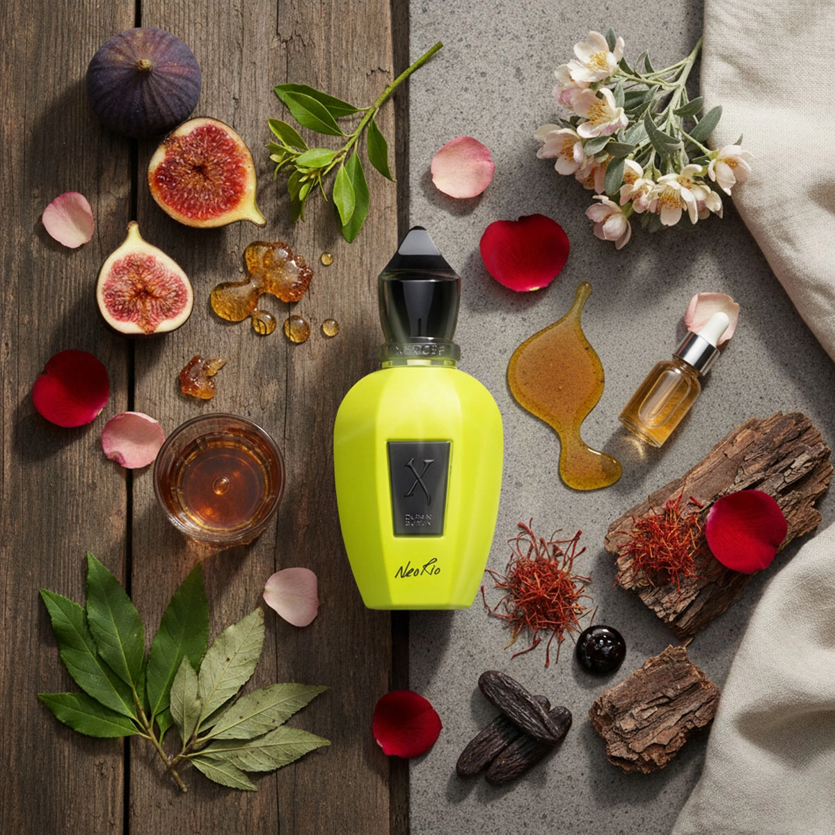 Xerjoff Duran Duran Neo Rio Yellow é um perfume compartilhado vibrante, futurista e cheio de personalidade, criado em homenagem à icônica banda britânica Duran Duran e inspirado na energia colorida e eletrizante da turnê “Future Past”. Seu nome faz referência ao espírito ousado da banda e ao clima tropical e artístico do Rio de Janeiro, um dos cenários que mais simbolizam criatividade, liberdade e movimento. A fragrância reflete esse espírito ousado ao combinar sofisticação e intensidade em cada acorde. Sua composição reúne notas de figo cristalizado, elemi (resina fresca com nuances apimentadas e cítricas), rum, óleo de rosas, açafrão, fava e patchouli.